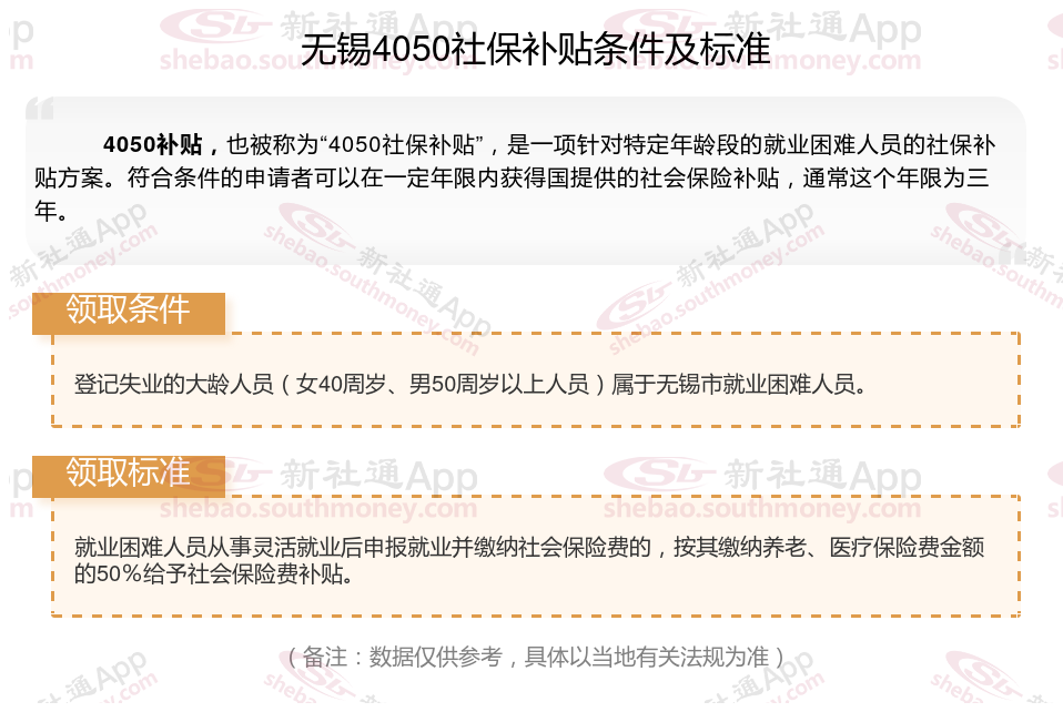 2024无锡4050补贴主要针对的是年龄在40岁以上的女性和50岁以上的男性,这些人群通常因为年龄较大而面临就业困难。