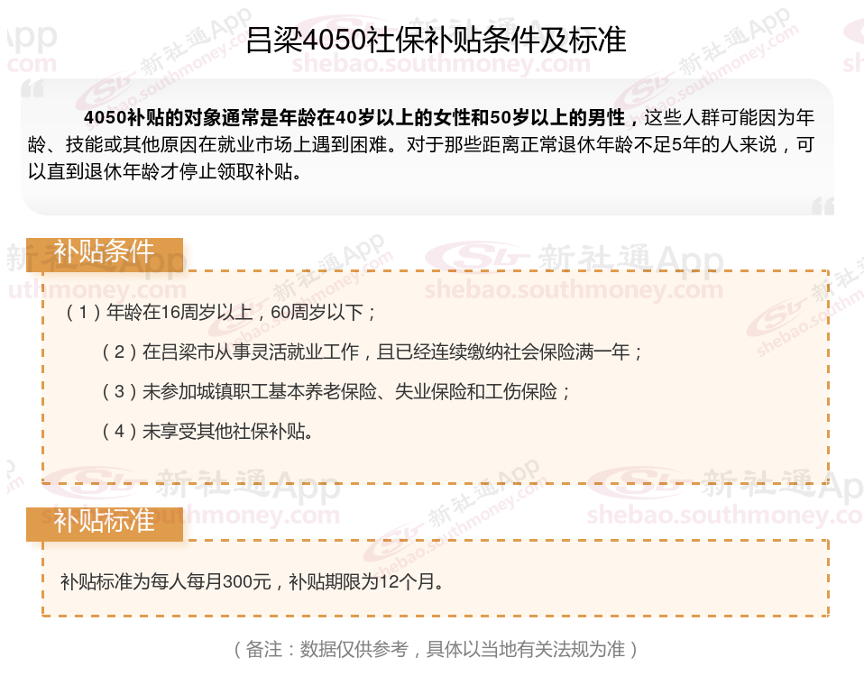 1、吕梁4050社保补贴申请条件
