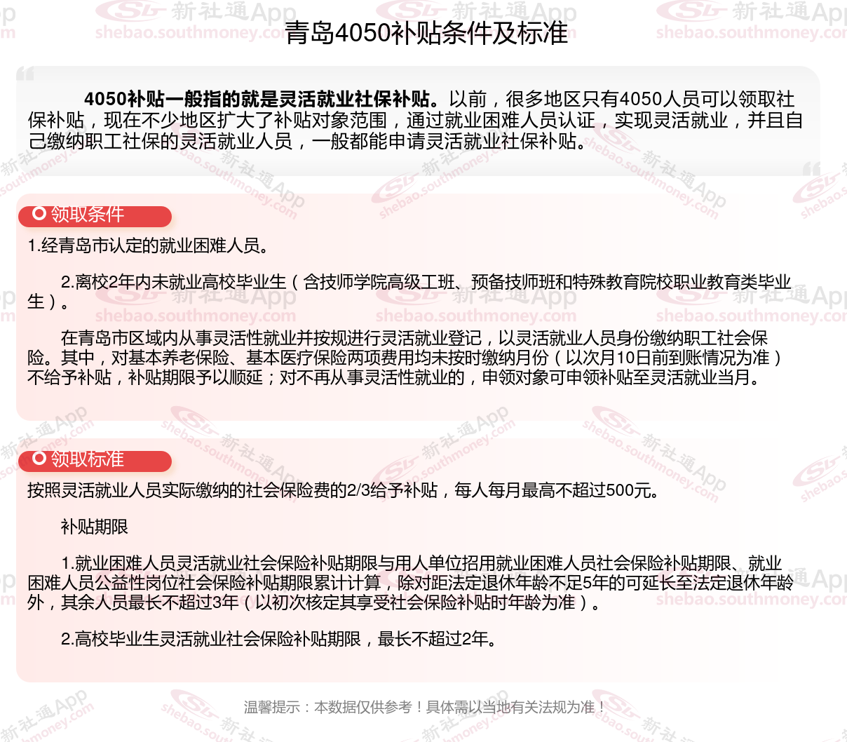 二、青岛4050社保补贴标准及条件2023-2024年,最新如下