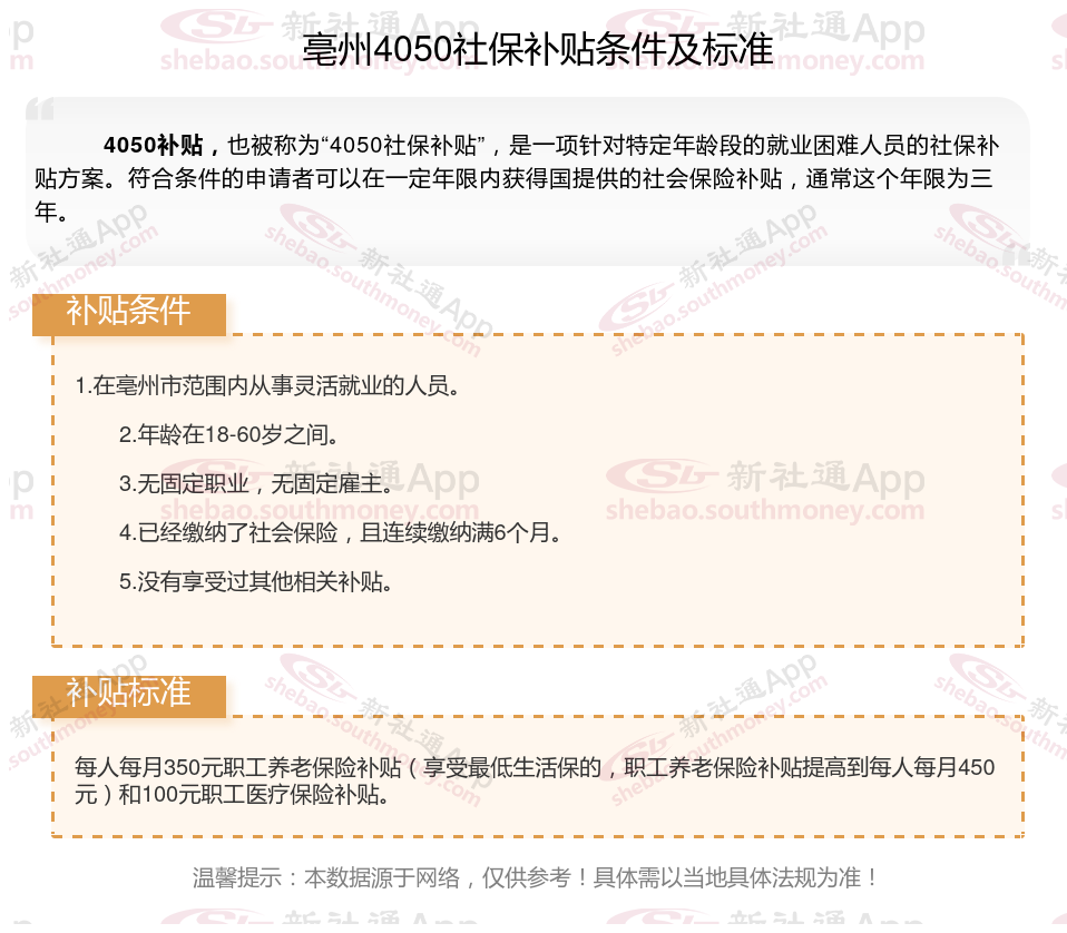 二、亳州4050社保补贴标准及条件2023-2024年