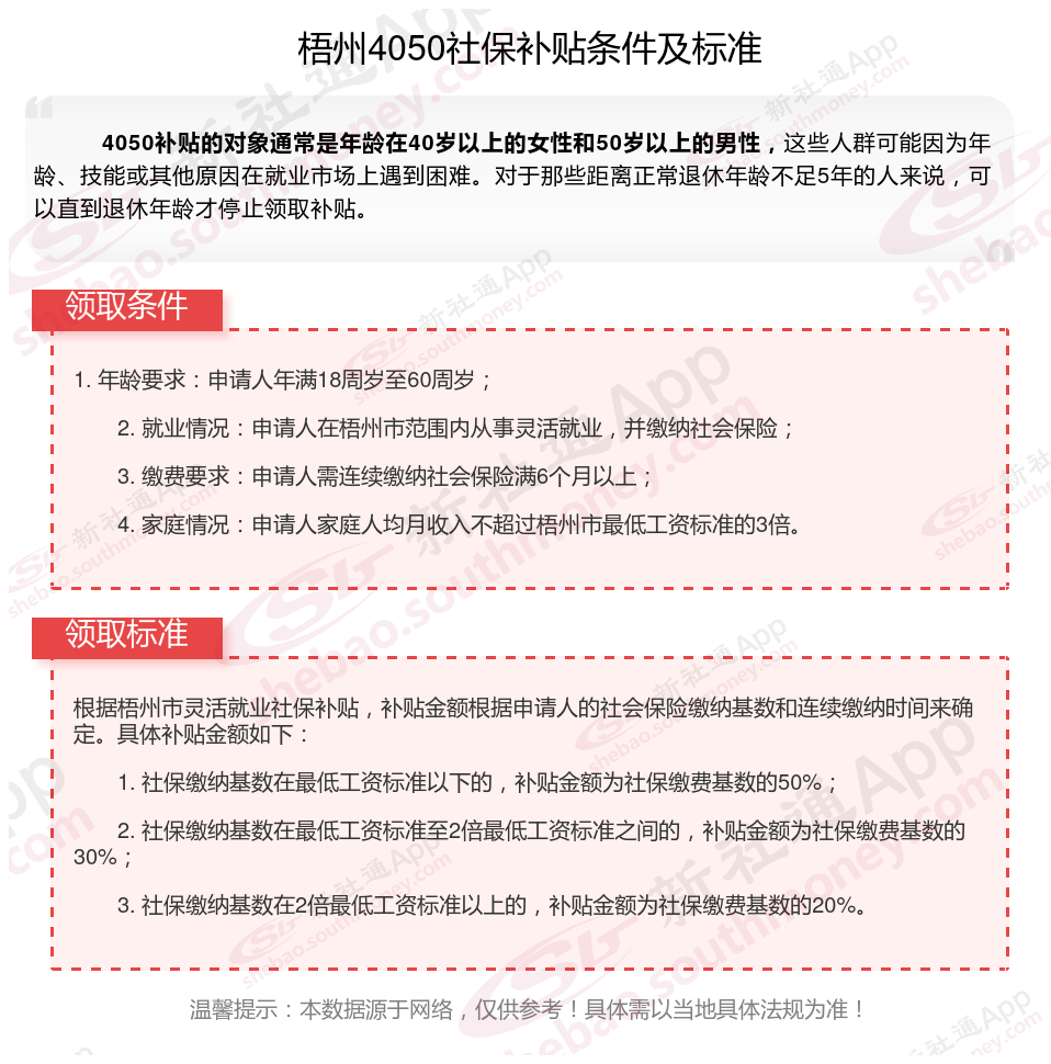 一、2023-2024年梧州4050社保补贴标准及条件,最新如下