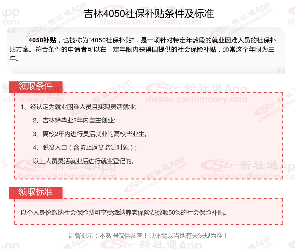 二、吉林4050社保补贴标准及条件2023-2024年,最新如下