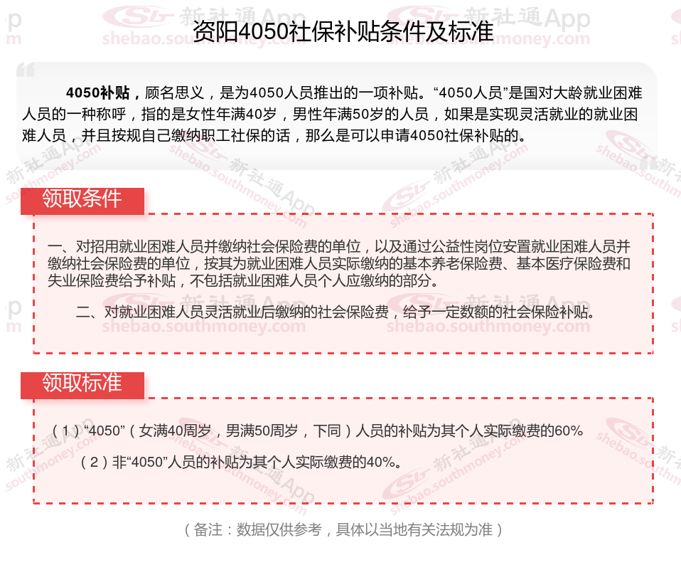 一、资阳4050社保补贴标准及条件2023-2024年