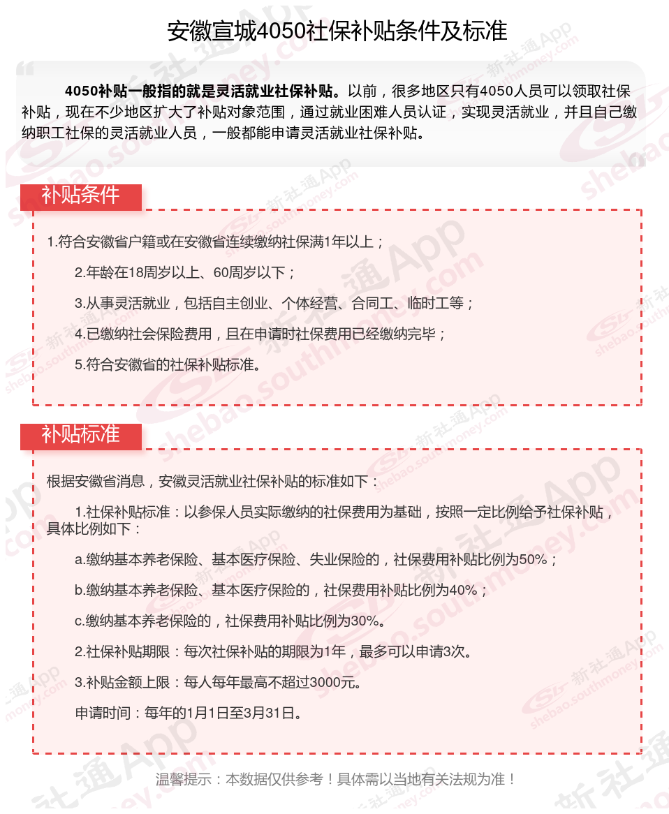 一、2023-2024年安徽宣城灵活就业4050社保补贴标准和条件是什么