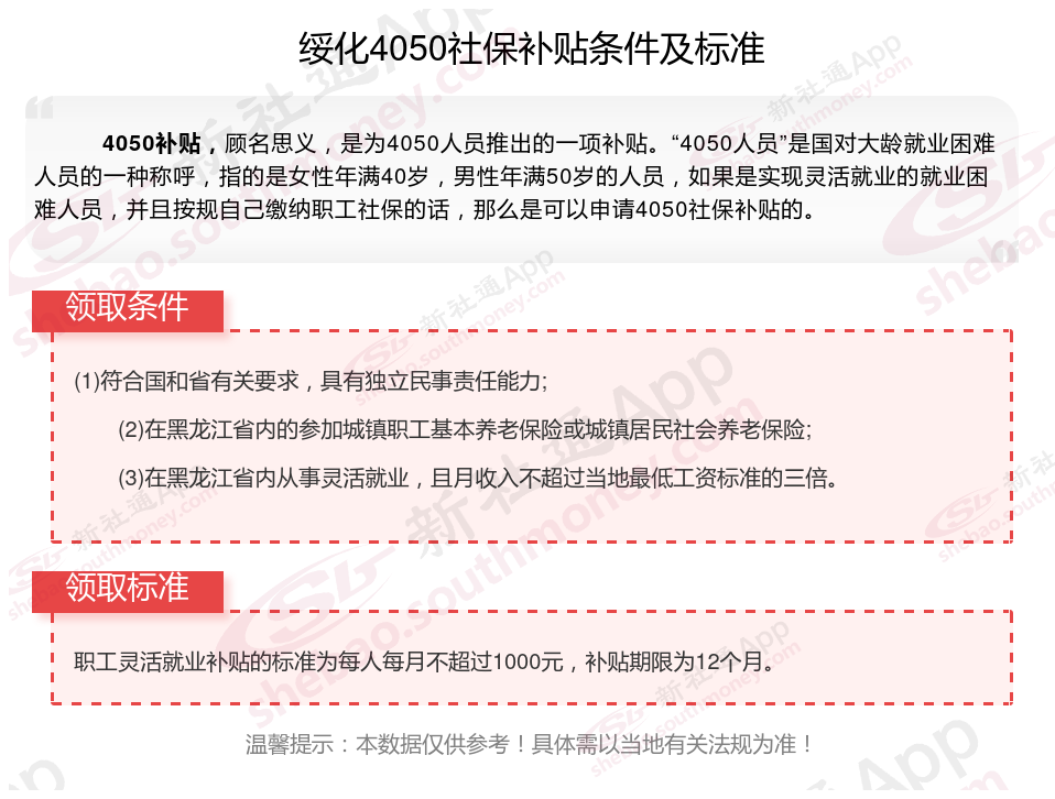 2024绥化灵活就业4050社保补贴是一项面向特定年龄段的就业困难人群的社会保险补贴。