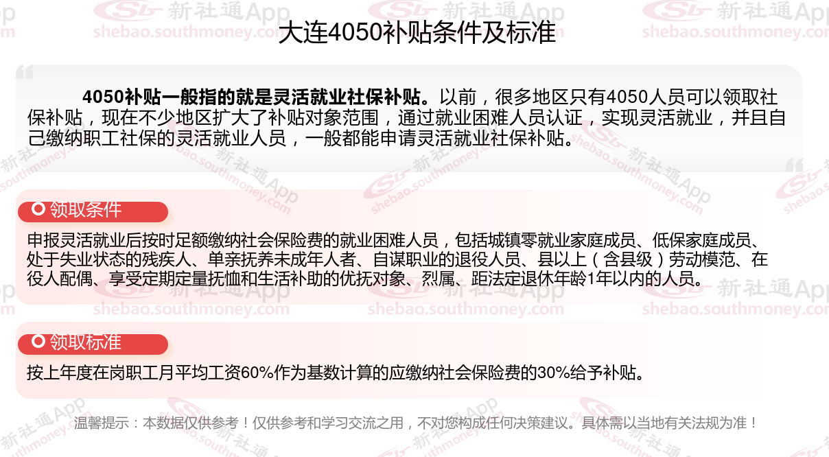 一、2023-2024年大连4050社保补贴标准及条件,最新如下