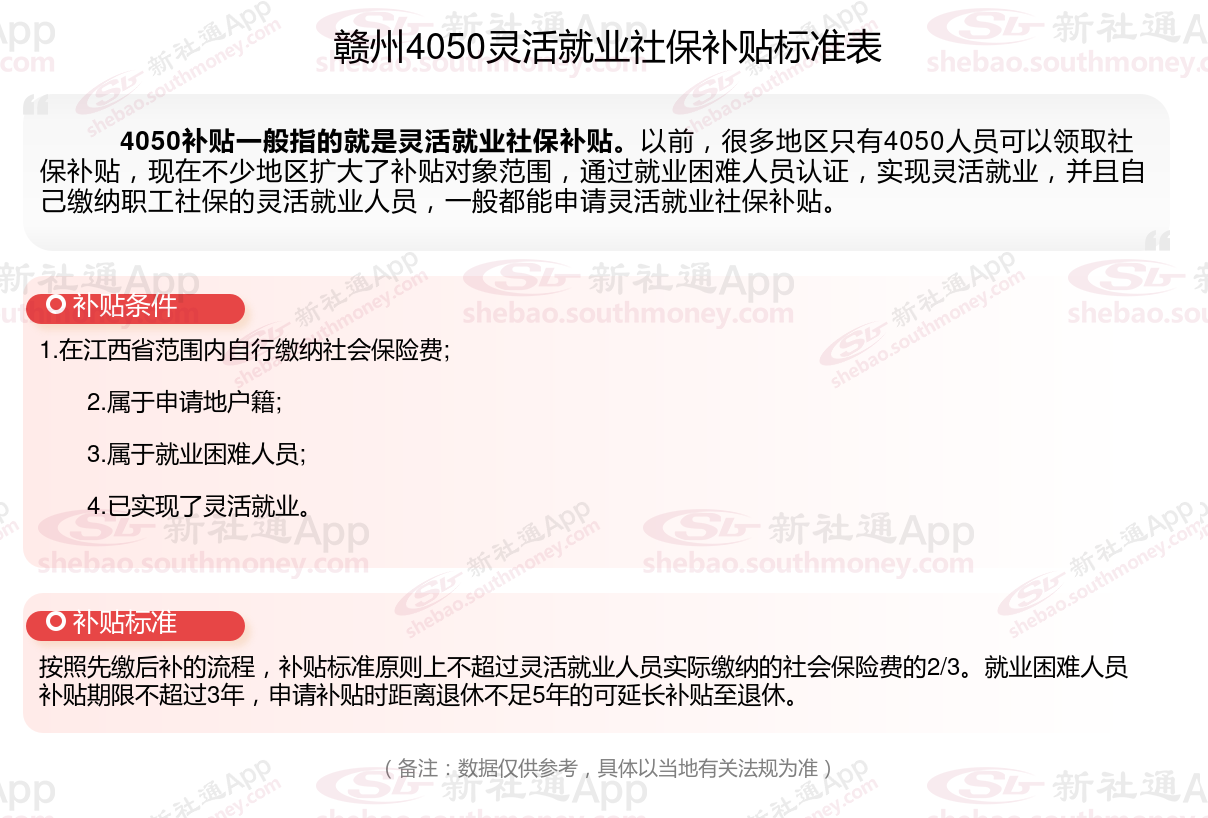 二、赣州灵活就业4050社保补贴标准及条件是什么