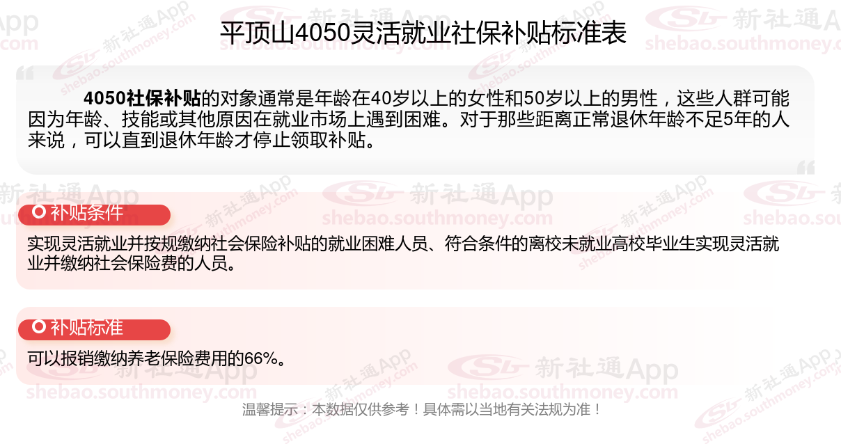 一、平顶山4050社保补贴标准及条件2023-2024年