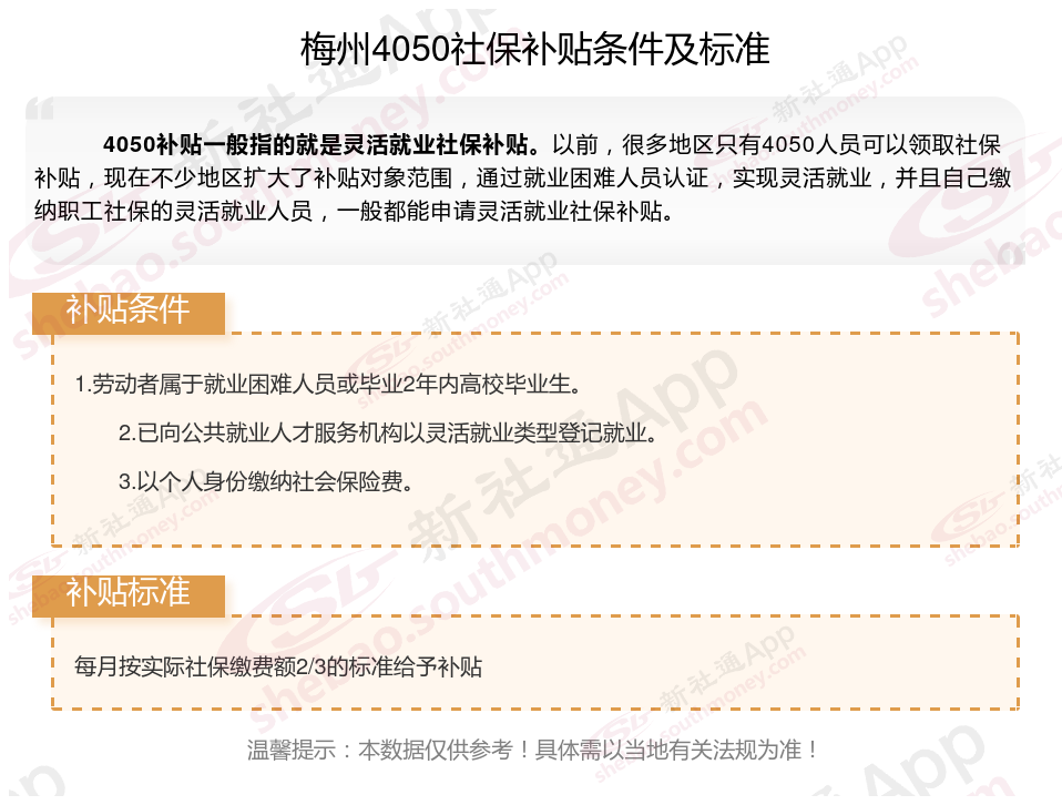 一、梅州4050社保补贴标准及条件2023-2024年