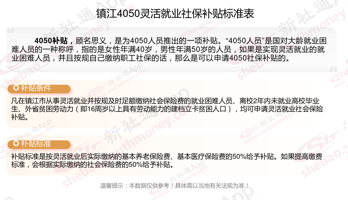 二、镇江灵活就业4050社保补贴标准及条件是什么