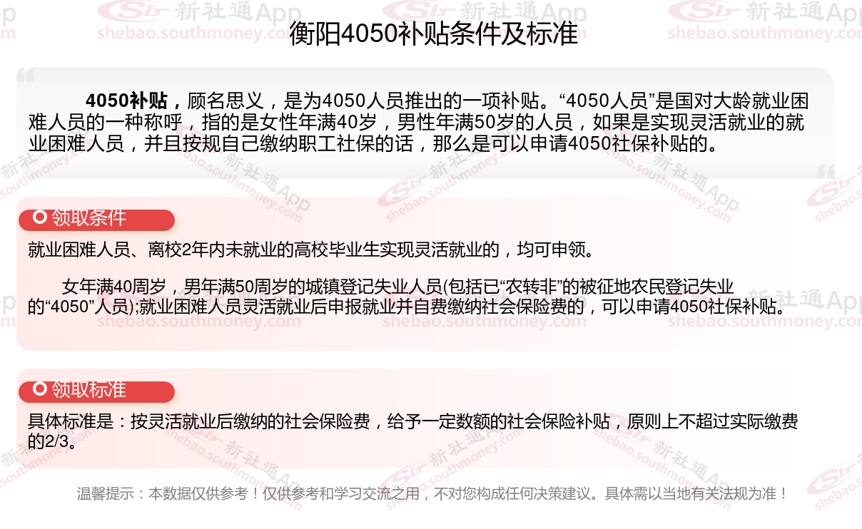 一、2023-2024年衡阳灵活就业4050社保补贴标准和条件是什么