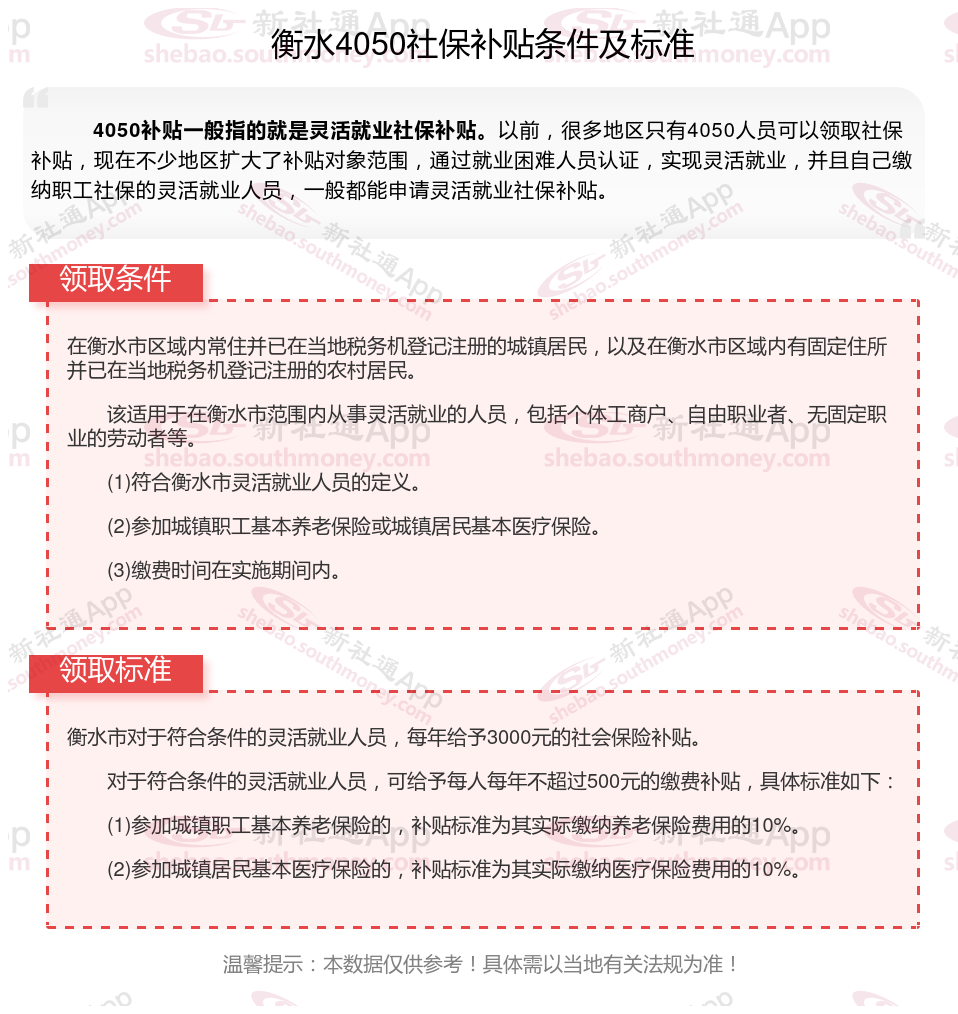一、衡水4050社保补贴标准及条件2023-2024年