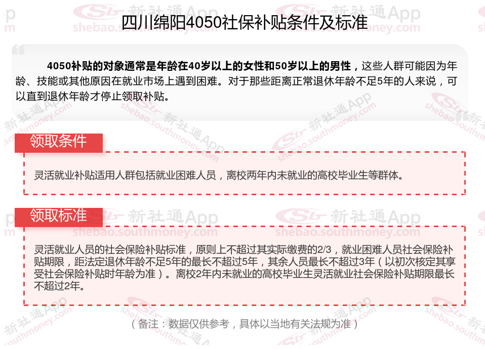 一、四川绵阳4050社保补贴标准及条件2023-2024年