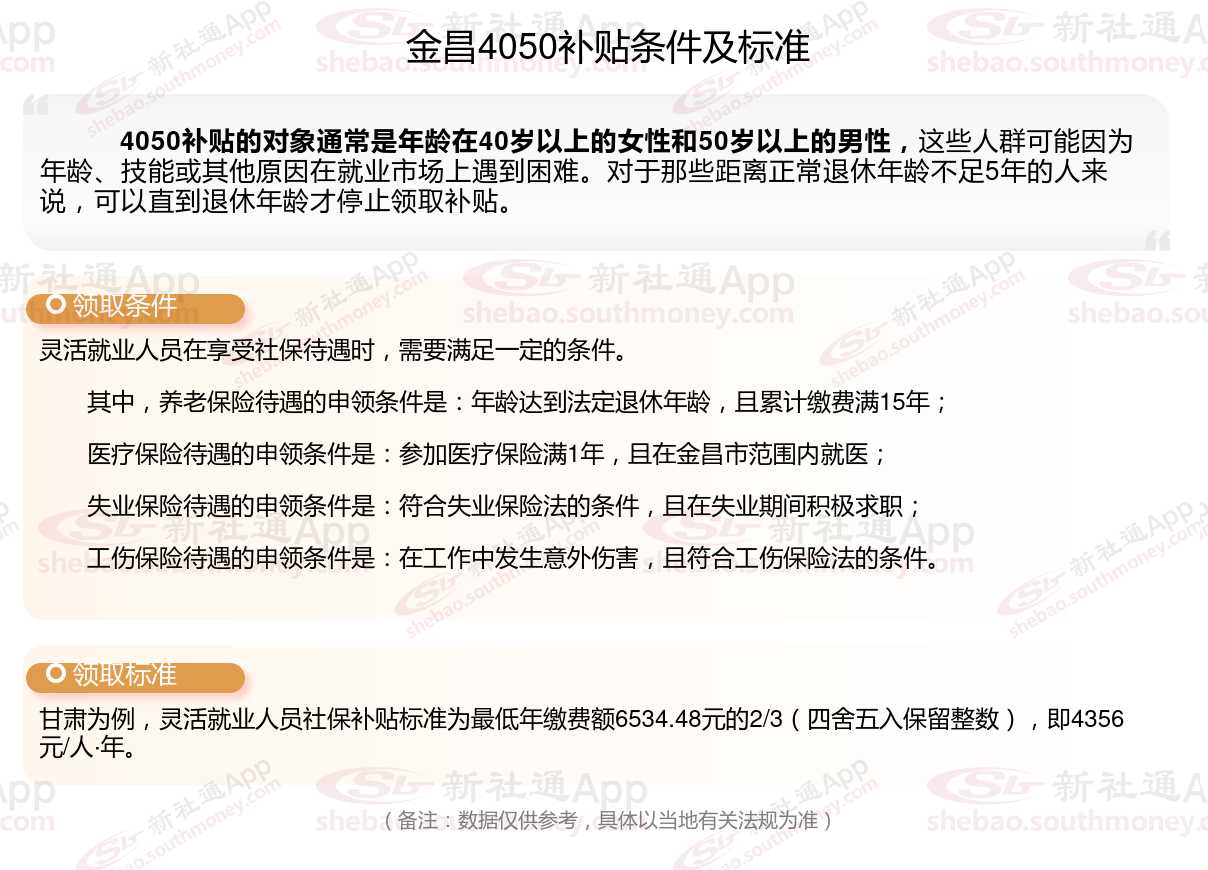 二、金昌4050社保补贴标准及条件2023-2024年