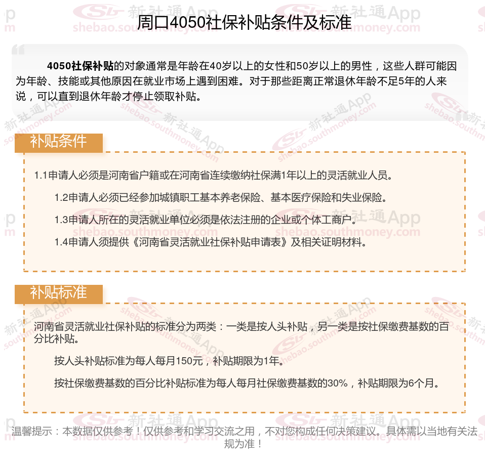 一、2023-2024年周口4050社保补贴标准及条件,最新如下