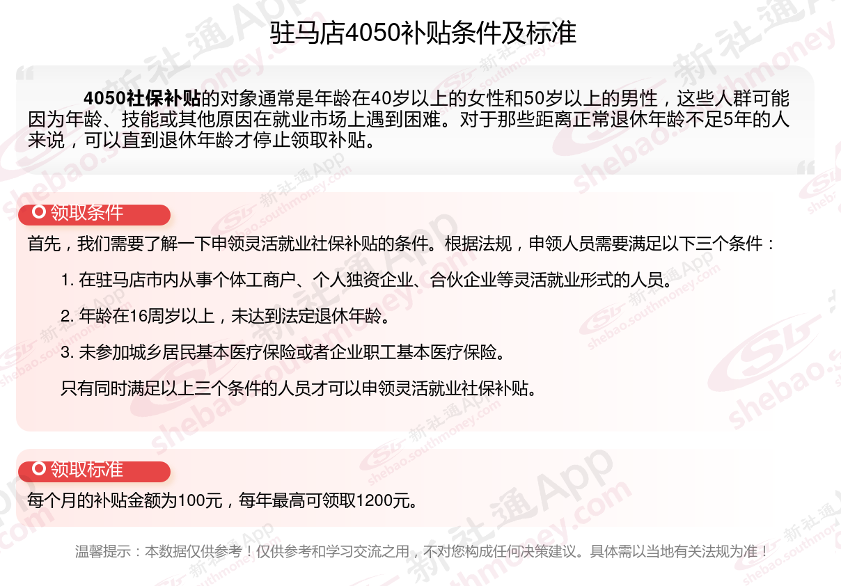 2024驻马店4050补贴主要针对的是年龄在40岁以上的女性和50岁以上的男性,这些人群通常因为年龄较大而面临就业困难。