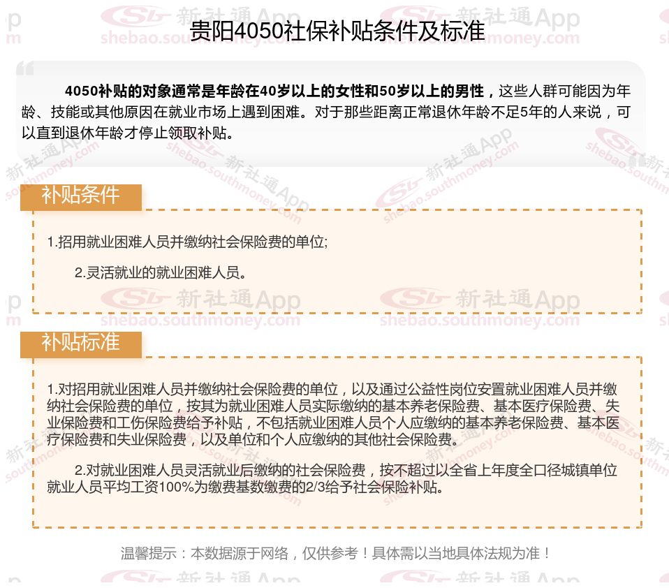 二、贵阳4050社保补贴标准及条件2023-2024年