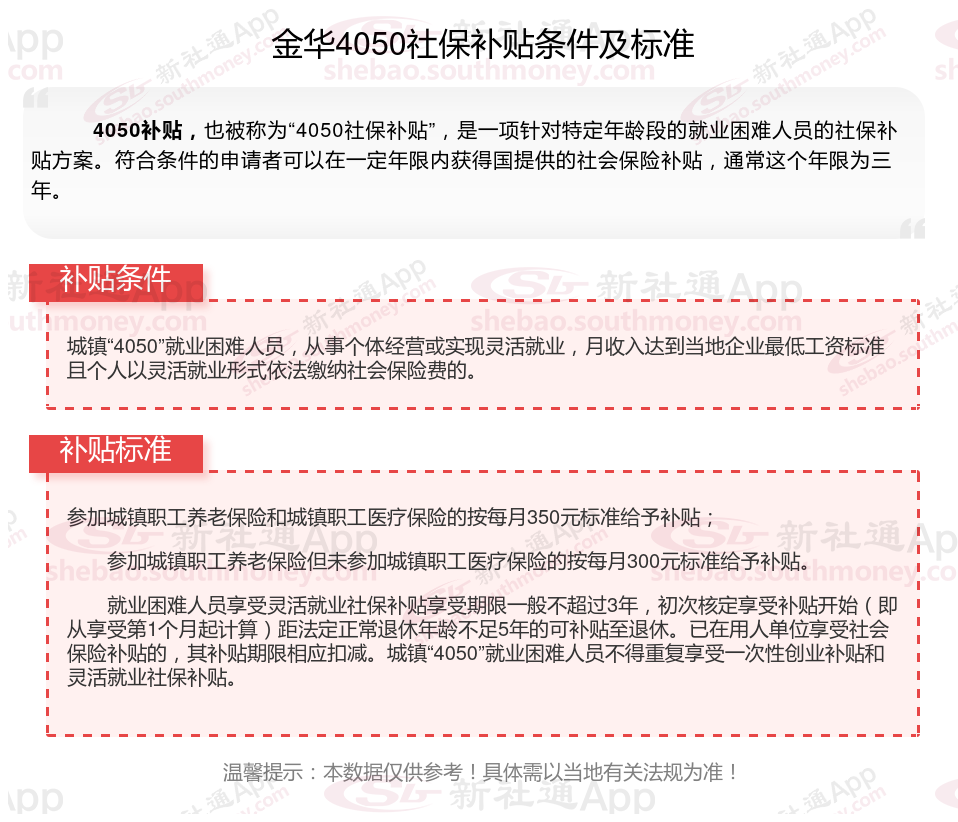 2024金华4050补贴主要针对的是年龄在40岁以上的女性和50岁以上的男性,这些人群通常因为年龄较大而面临就业困难。