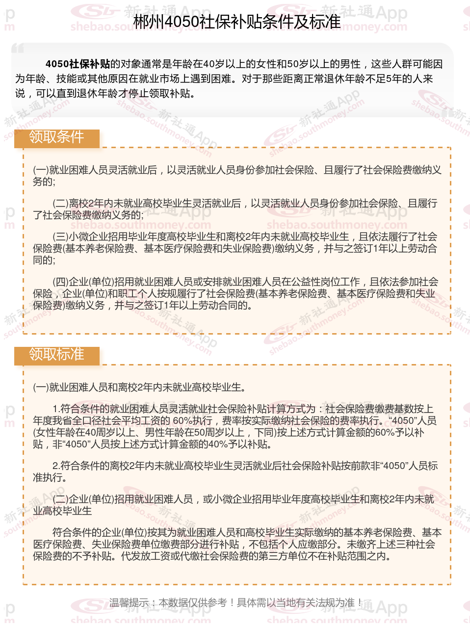 2024郴州4050补贴主要针对的是年龄在40岁以上的女性和50岁以上的男性,这些人群通常因为年龄较大而面临就业困难。