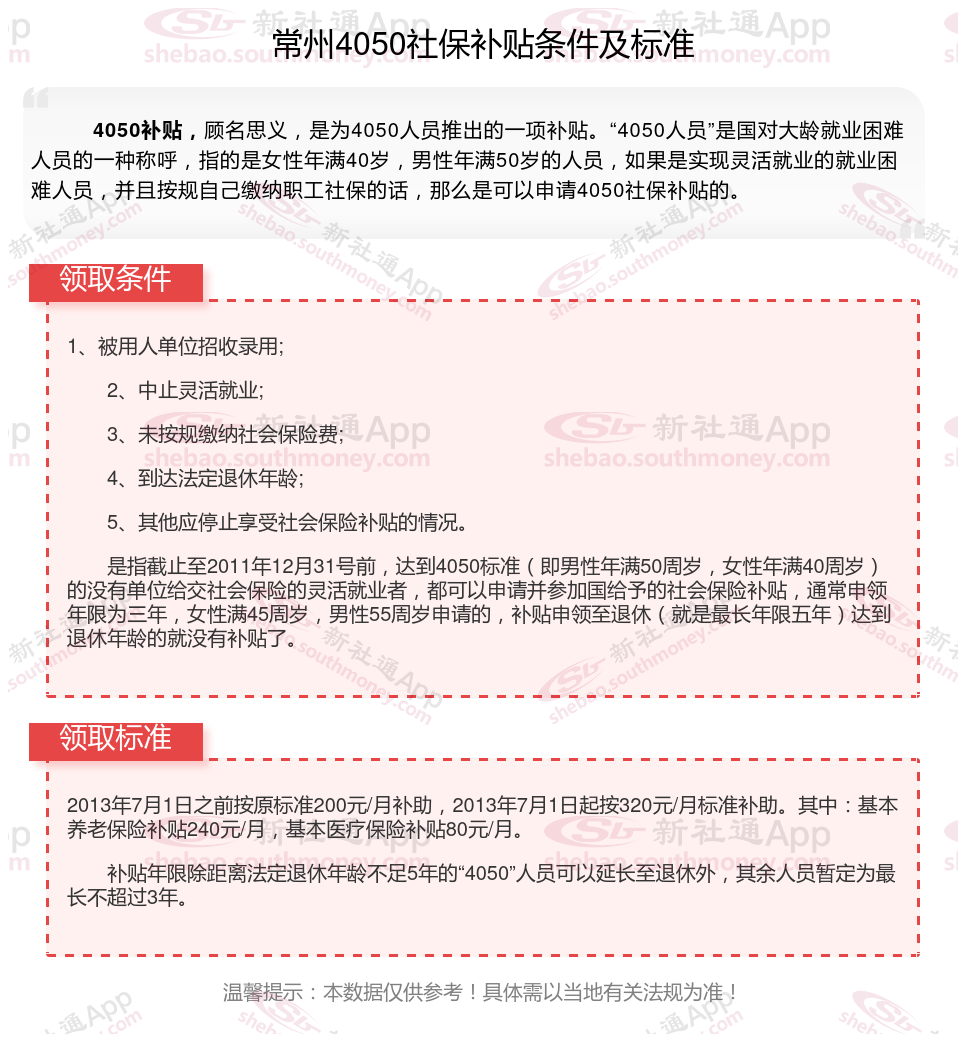 2024常州4050补贴主要针对的是年龄在40岁以上的女性和50岁以上的男性,这些人群通常因为年龄较大而面临就业困难。