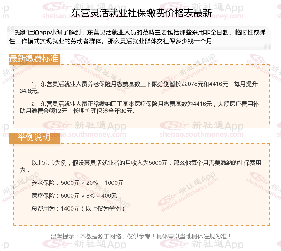 一、2024年东营灵活就业社保缴费标准表 东营灵活就业社保多少钱一个月?