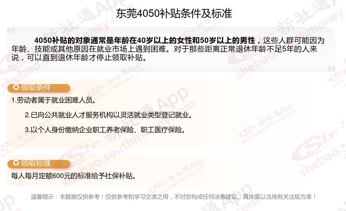 2024东莞灵活就业4050社保补贴是一项面向特定年龄段的就业困难人群的社会保险补贴。