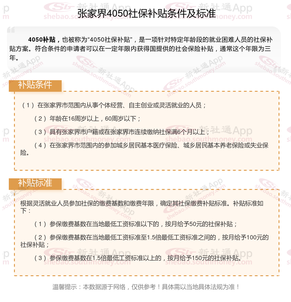 二、2023-2024年张家界4050社保补贴标准,最新领取条件来了