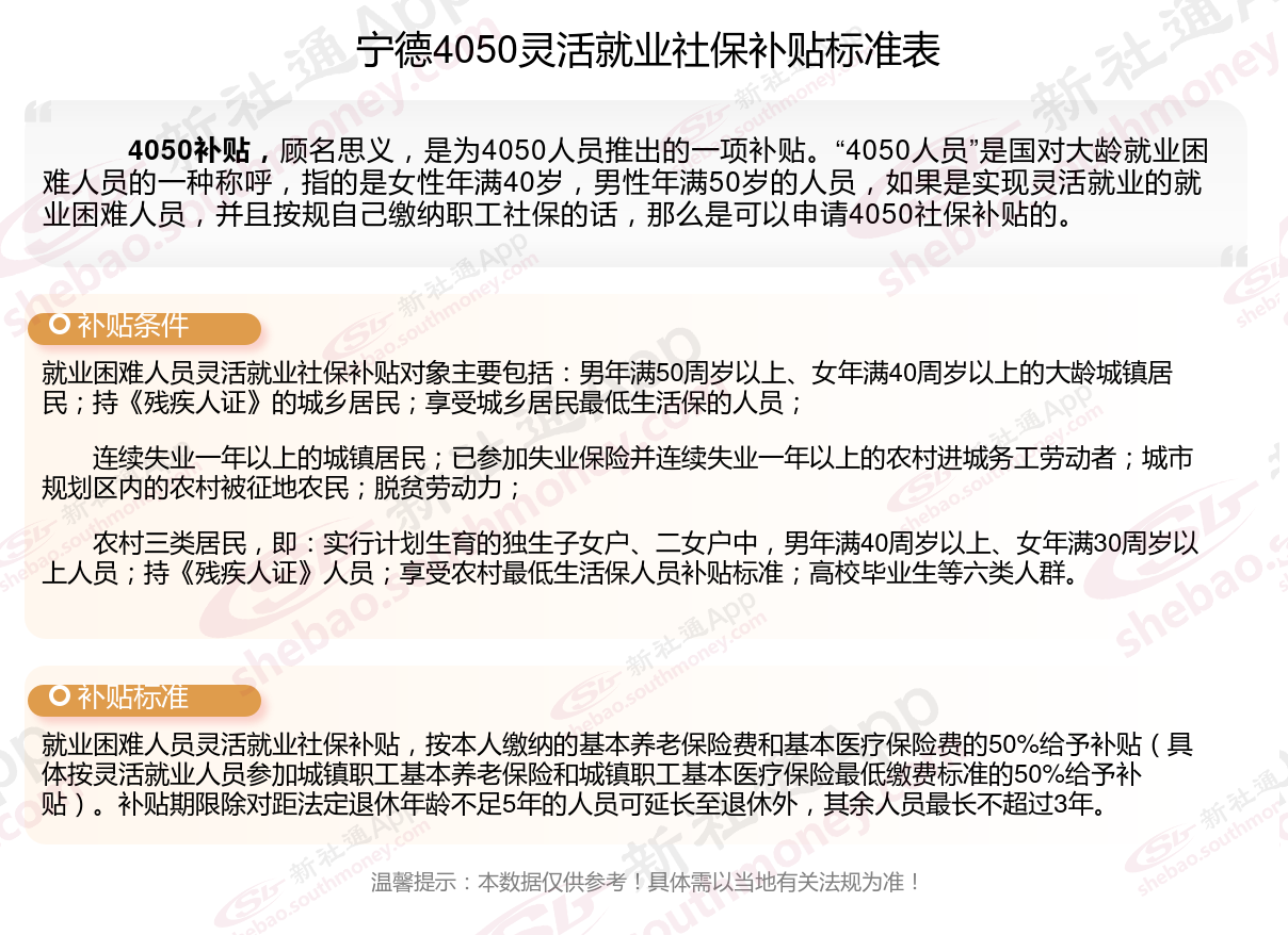 一、宁德4050社保补贴标准及条件2023-2024年