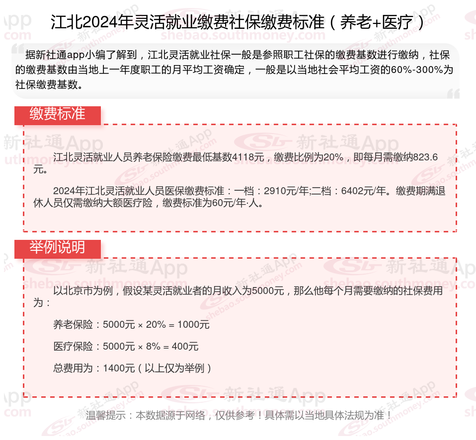 三、江北2024年灵活就业社保缴费基数及比例最新消息