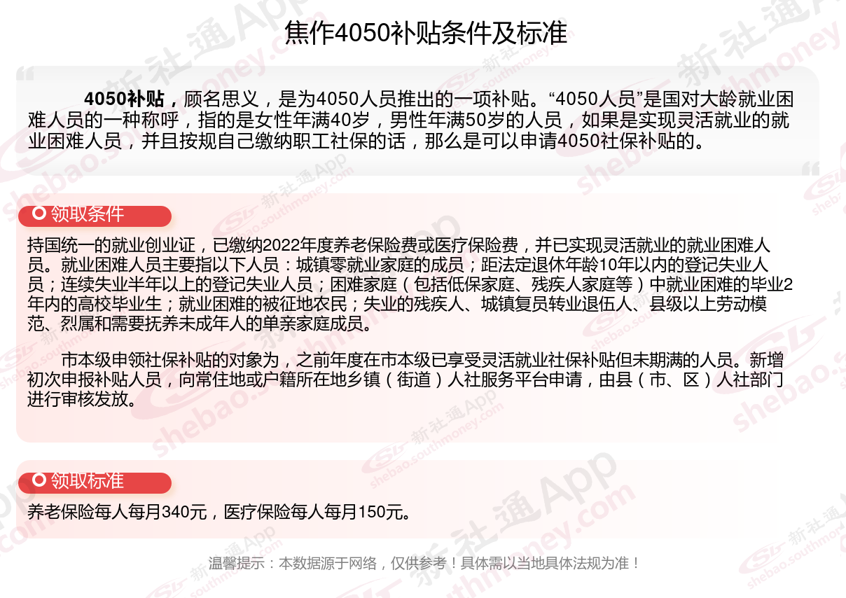 一、2023-2024年焦作灵活就业4050社保补贴标准和条件是什么