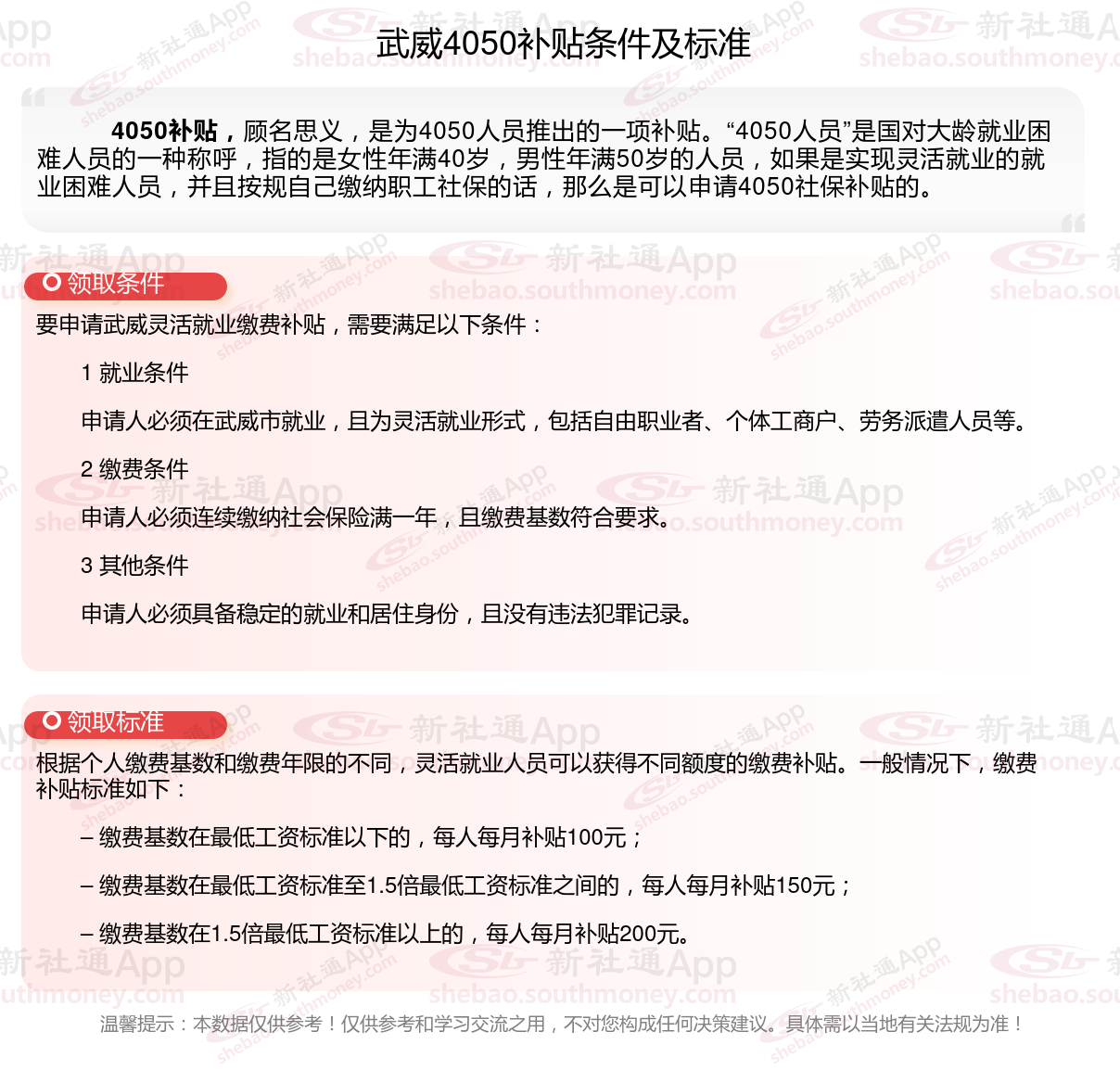 二、武威4050社保补贴标准及条件2023-2024年