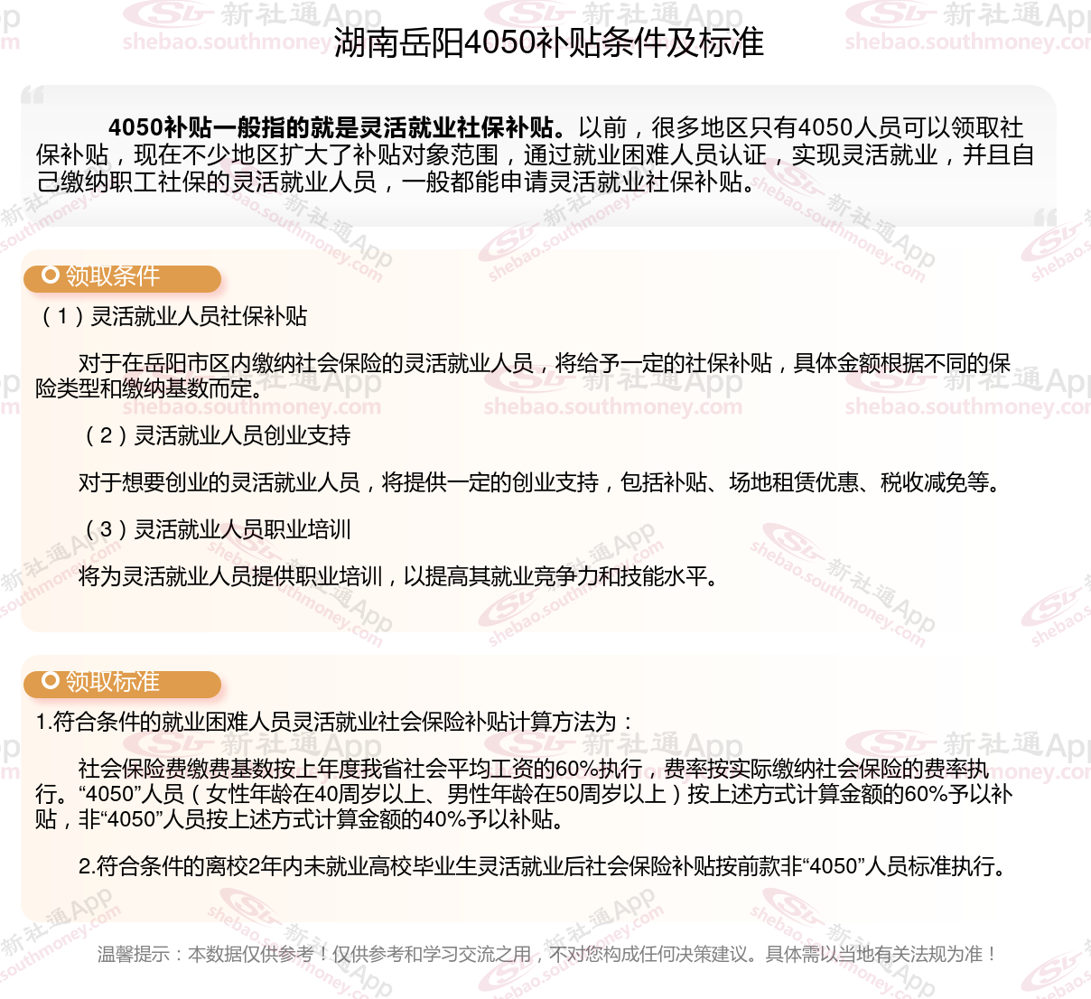 一、湖南岳阳4050社保补贴标准及条件2023-2024年