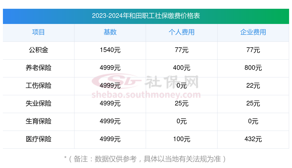 2024年和田社保缴费多少钱?下表是2023-2024年和田社保费用明细参考,新社通app-社保缴费查询工具提供的最新数据如下: