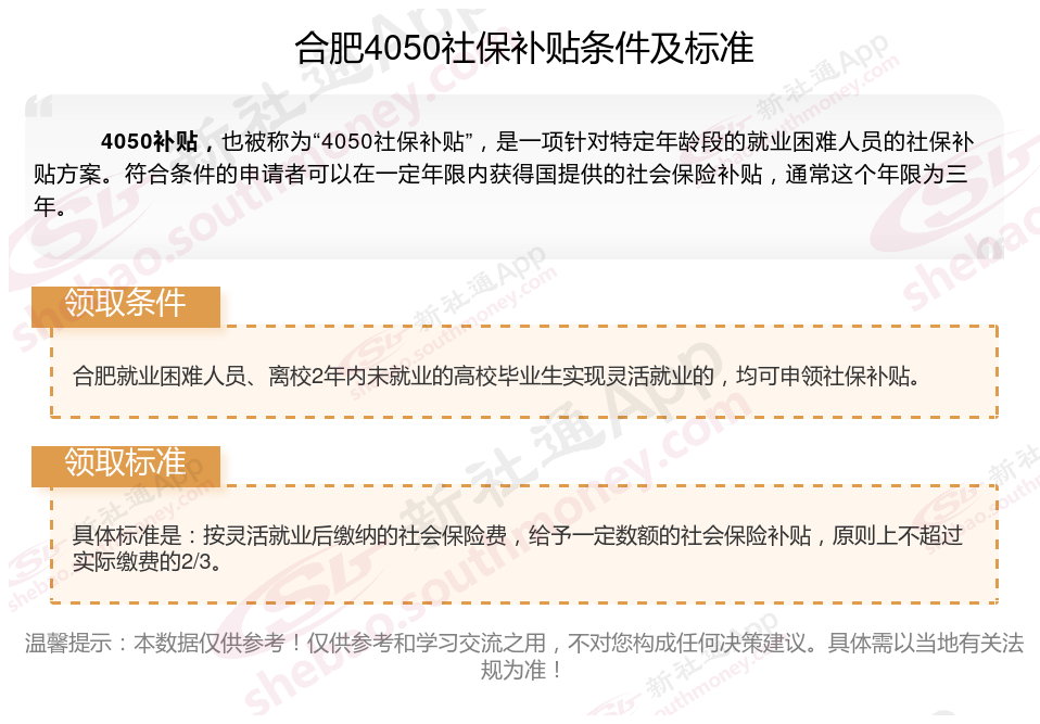 2024合肥4050补贴主要针对的是年龄在40岁以上的女性和50岁以上的男性,这些人群通常因为年龄较大而面临就业困难。