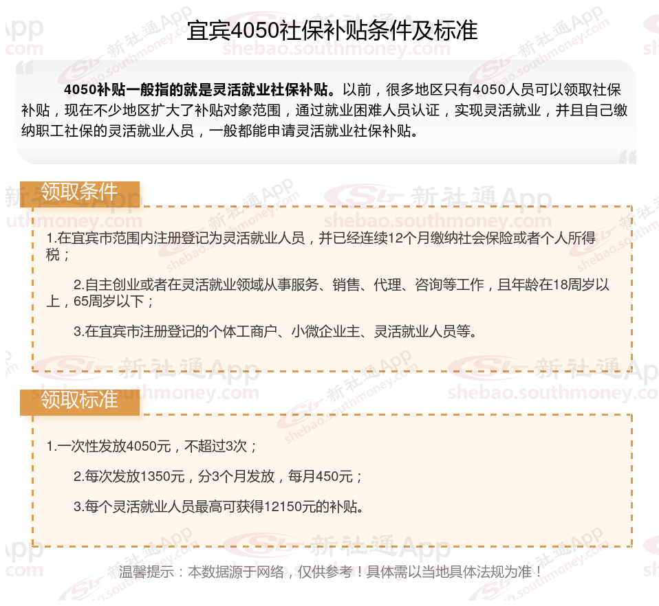 二、2023-2024年宜宾4050社保补贴标准及条件
