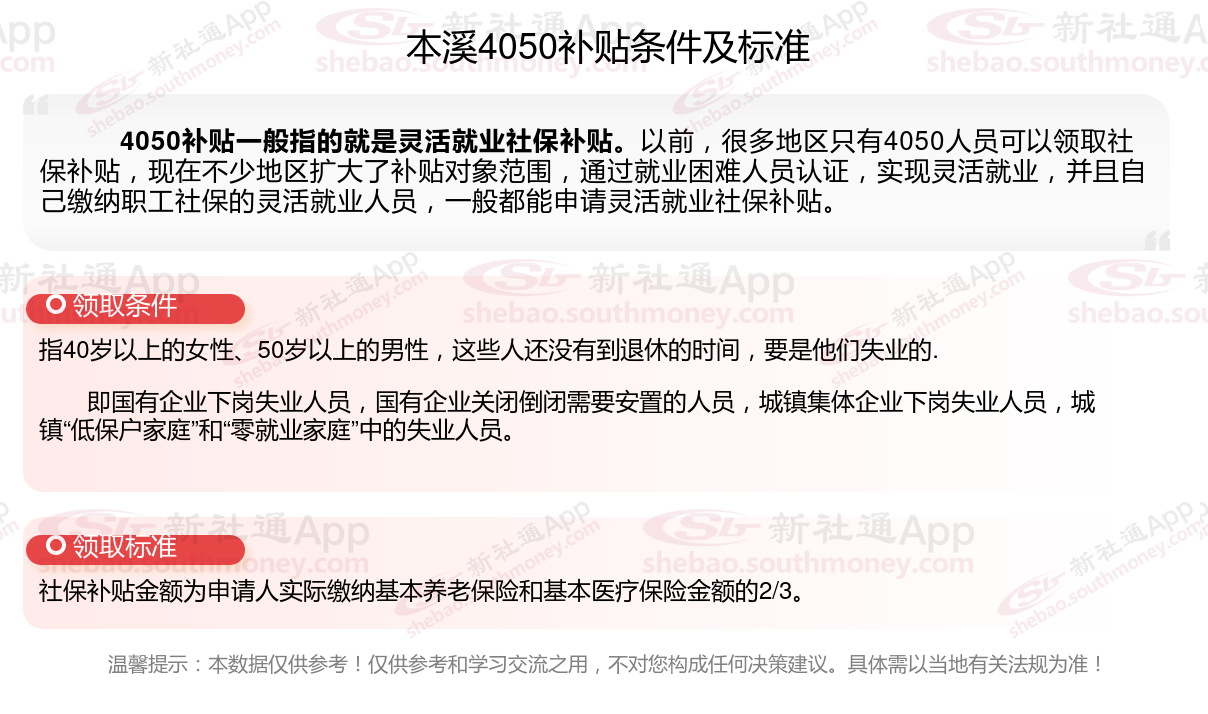 2024本溪灵活就业4050社保补贴是一项面向特定年龄段的就业困难人群的社会保险补贴。