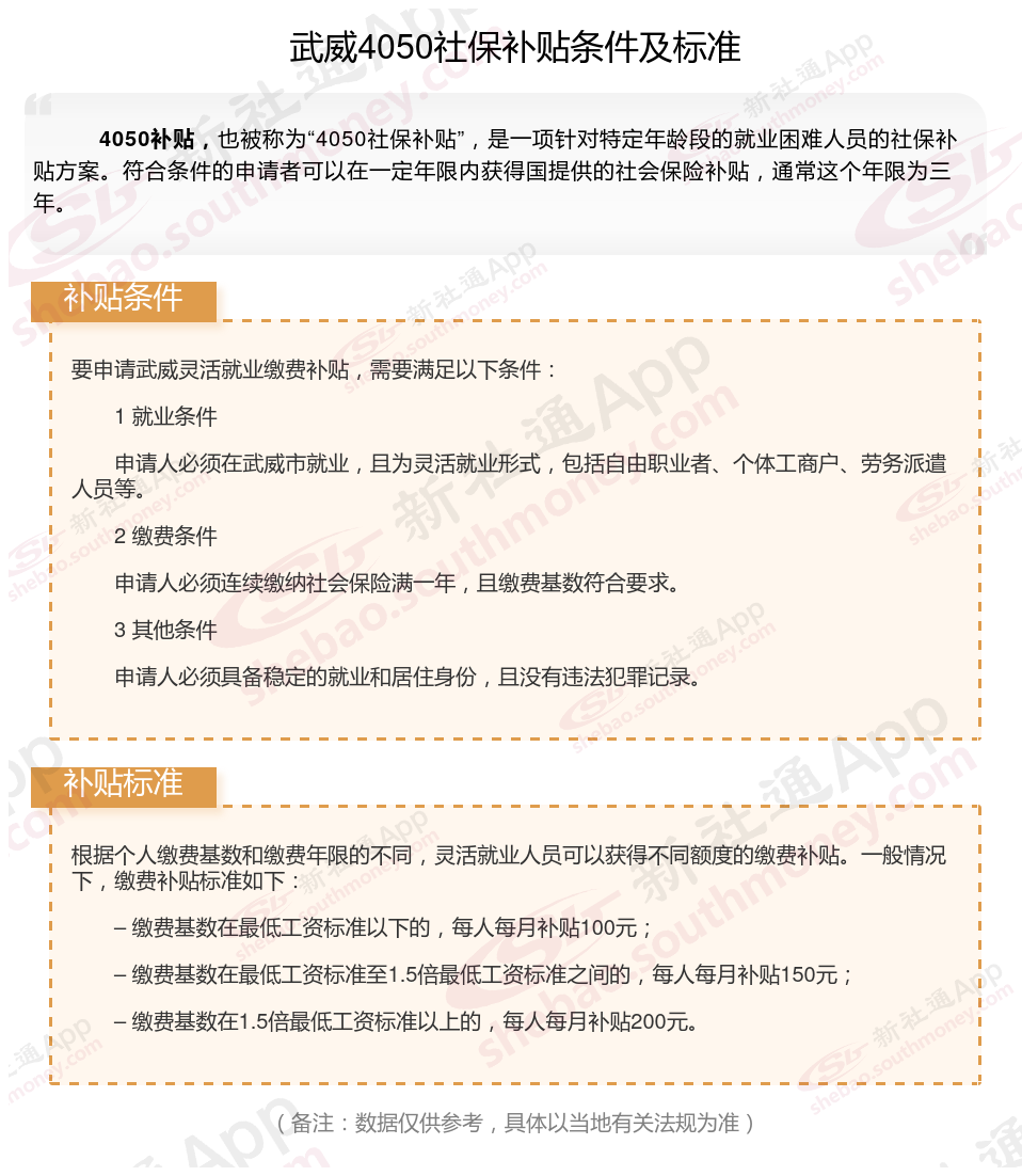 一、武威4050社保补贴标准及条件2023-2024年