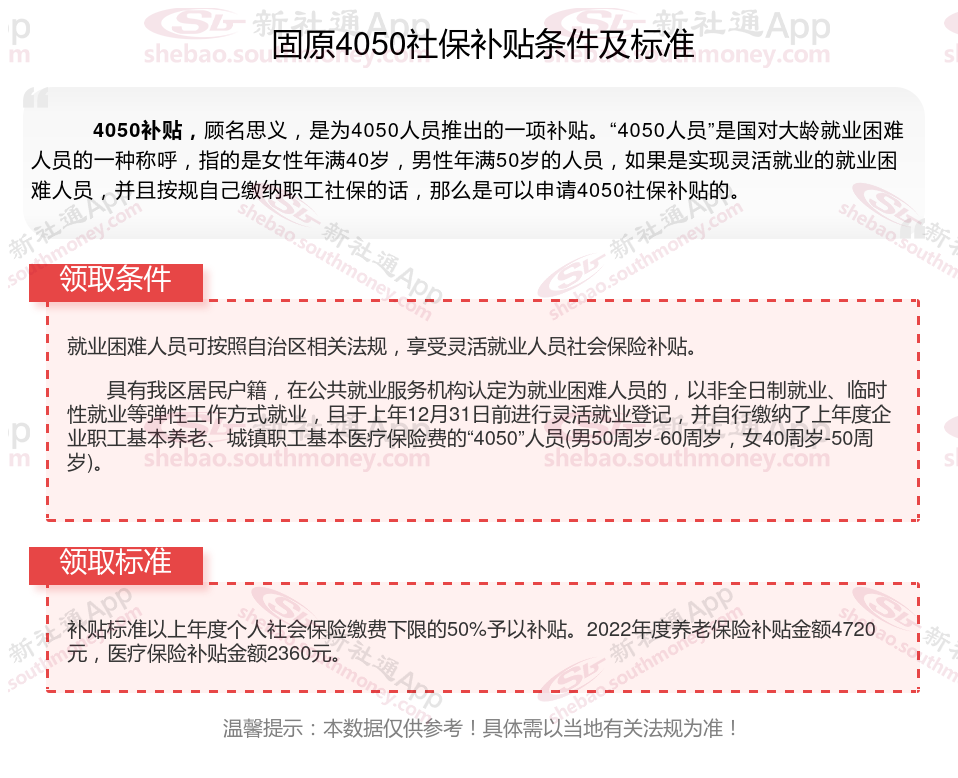 二、2023-2024年固原4050社保补贴标准,最新领取条件来了