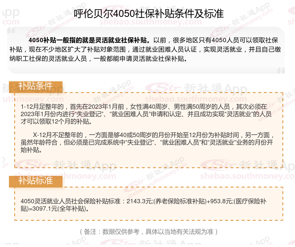 2024呼伦贝尔灵活就业4050社保补贴是一项面向特定年龄段的就业困难人群的社会保险补贴。