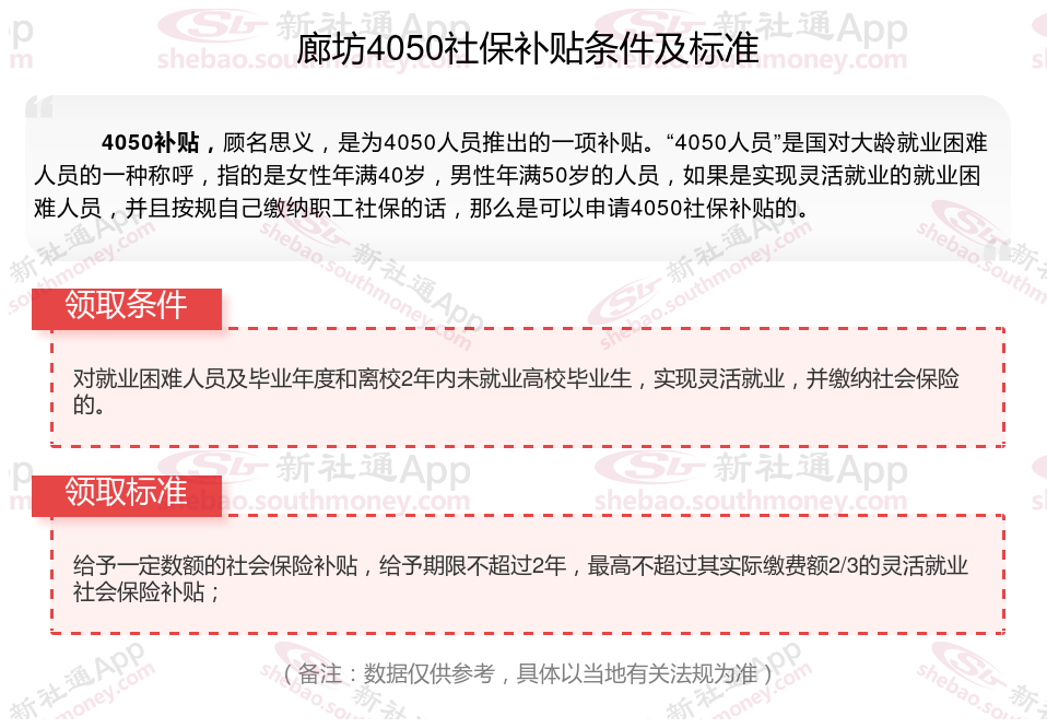 一、廊坊4050社保补贴标准及条件2023-2024年