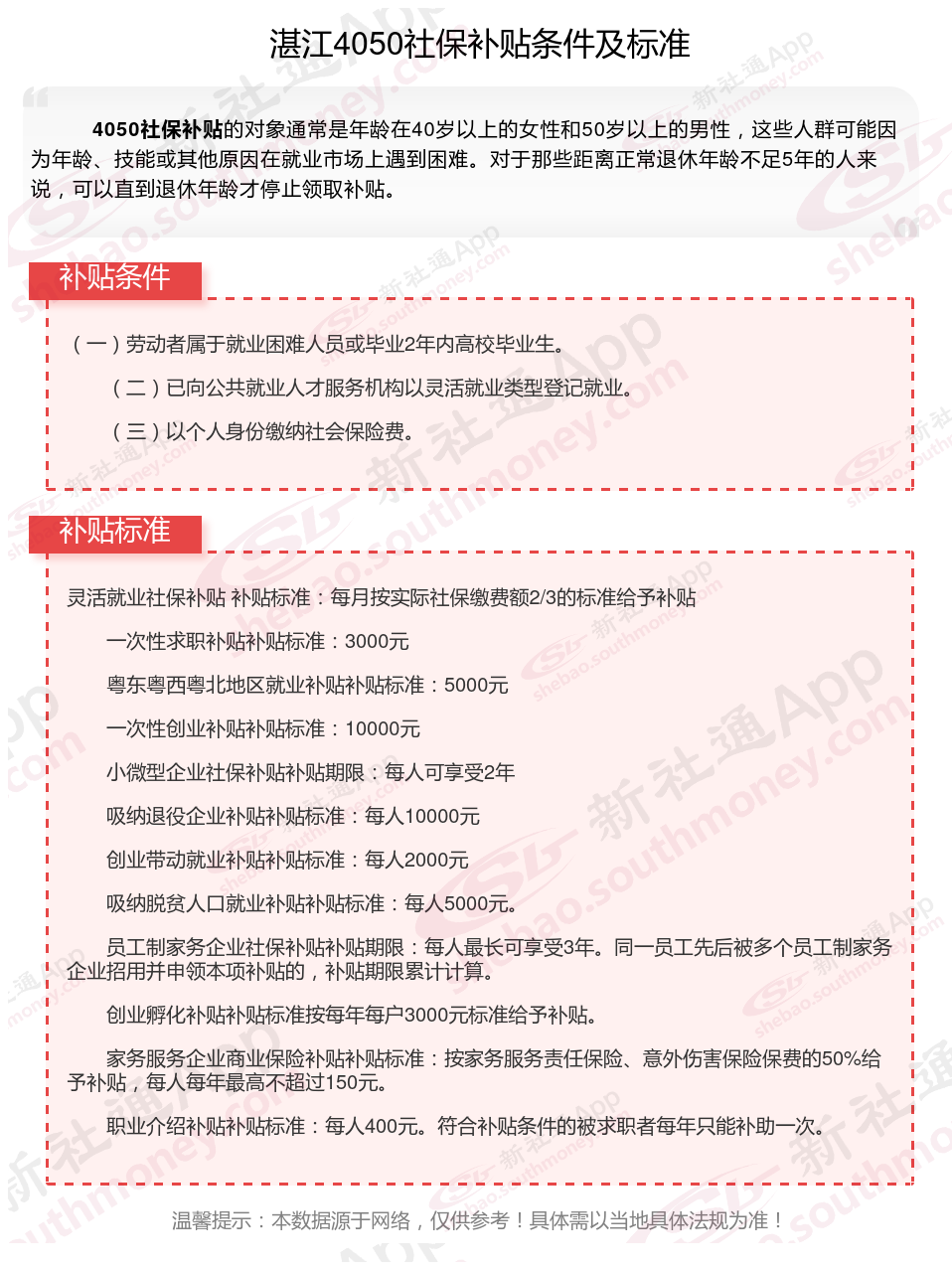 一、2023-2024年湛江灵活就业4050社保补贴标准和条件是什么