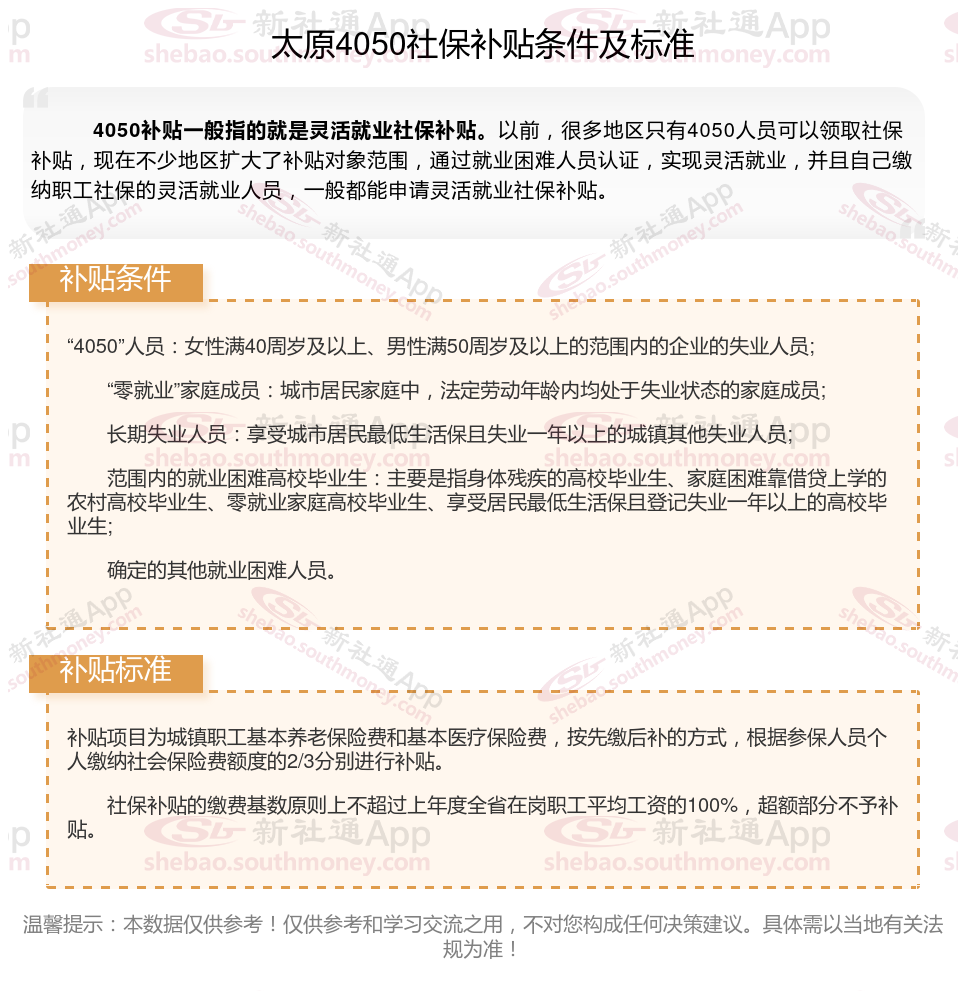 一、2023-2024年太原4050社保补贴标准及条件,最新如下