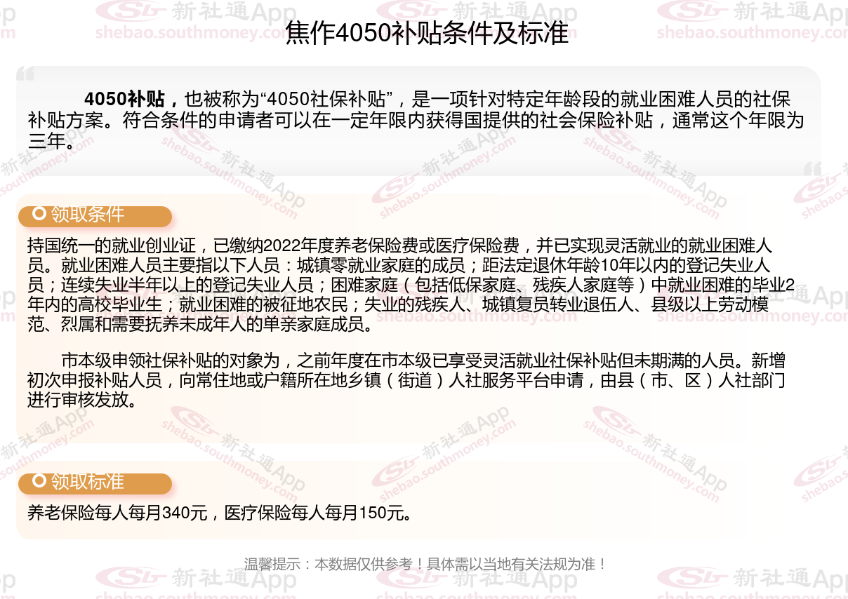 2024焦作灵活就业4050社保补贴是一项面向特定年龄段的就业困难人群的社会保险补贴。