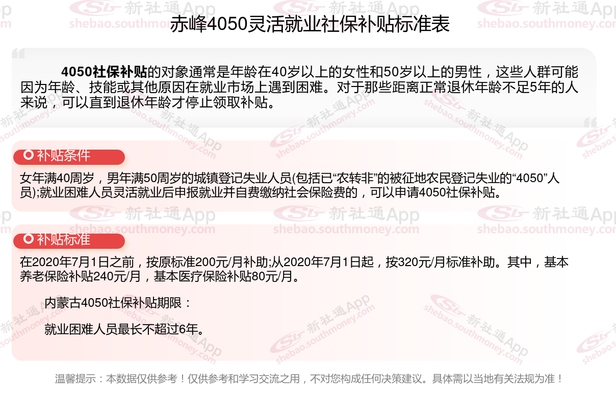 2024赤峰灵活就业4050社保补贴是一项面向特定年龄段的就业困难人群的社会保险补贴。