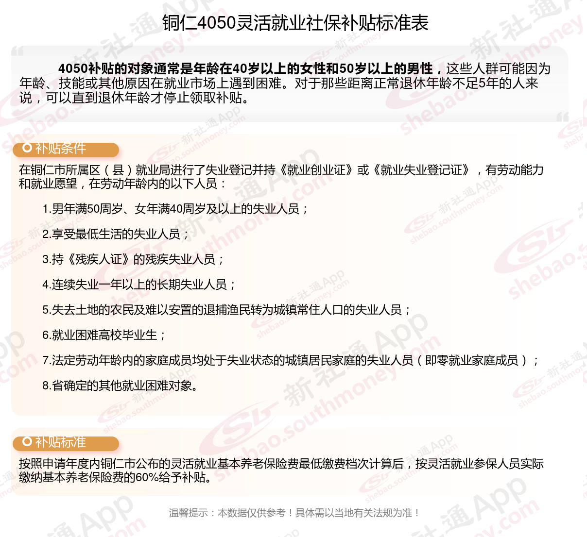 一、铜仁4050社保补贴标准及条件2023-2024年