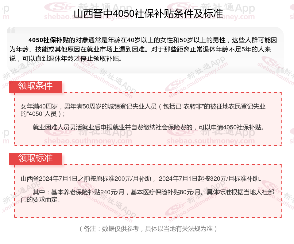 二、山西晋中4050社保补贴标准及条件2023-2024年