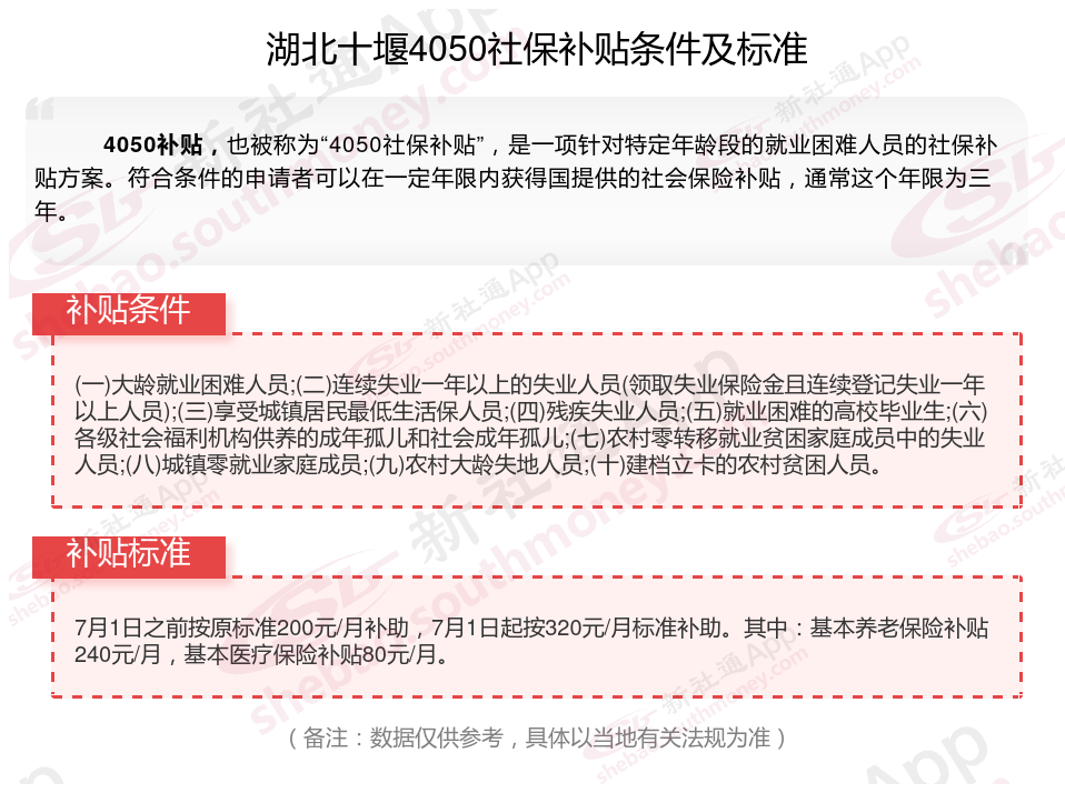 2024湖北十堰灵活就业4050社保补贴是一项面向特定年龄段的就业困难人群的社会保险补贴。