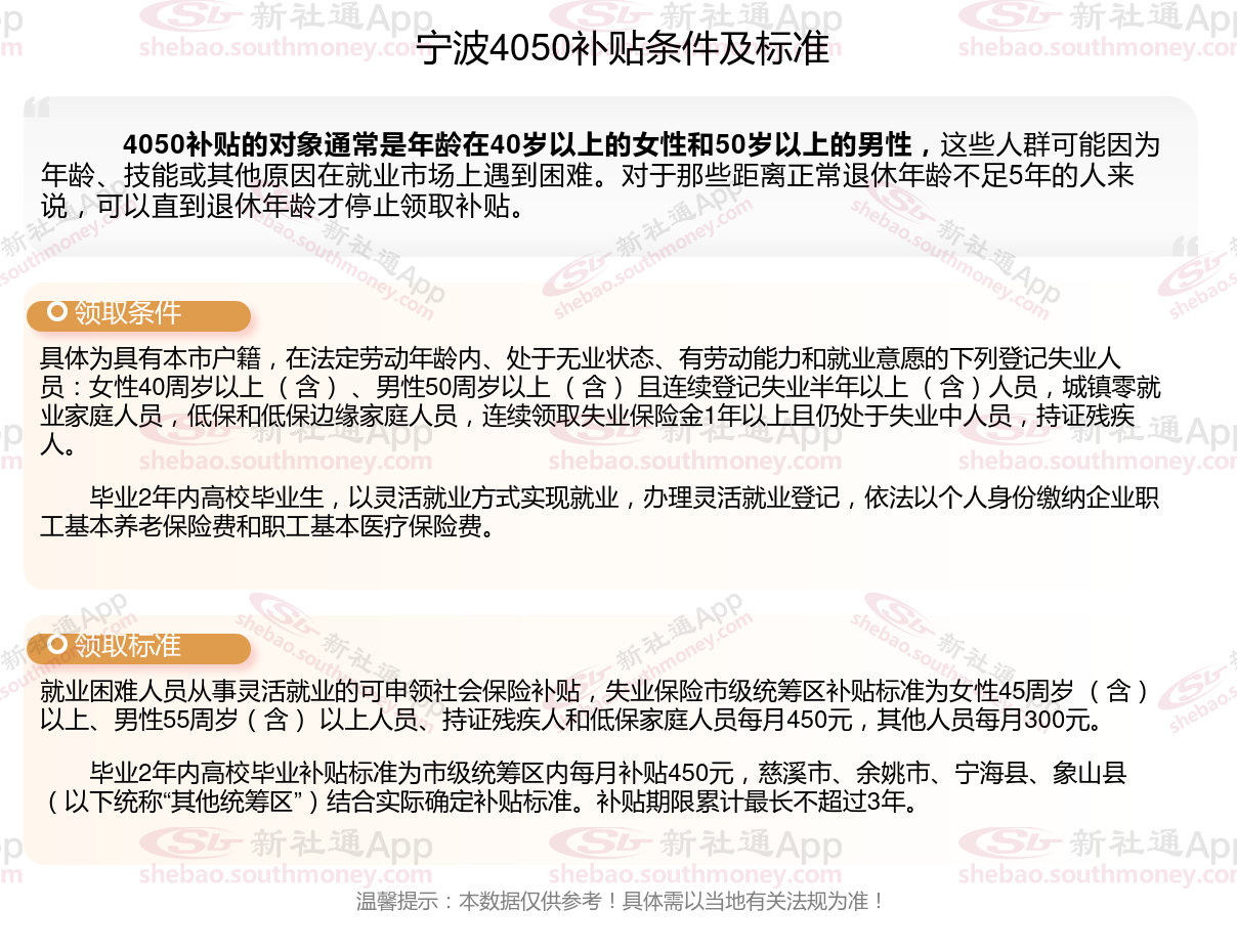 一、宁波4050社保补贴标准及条件2023-2024年