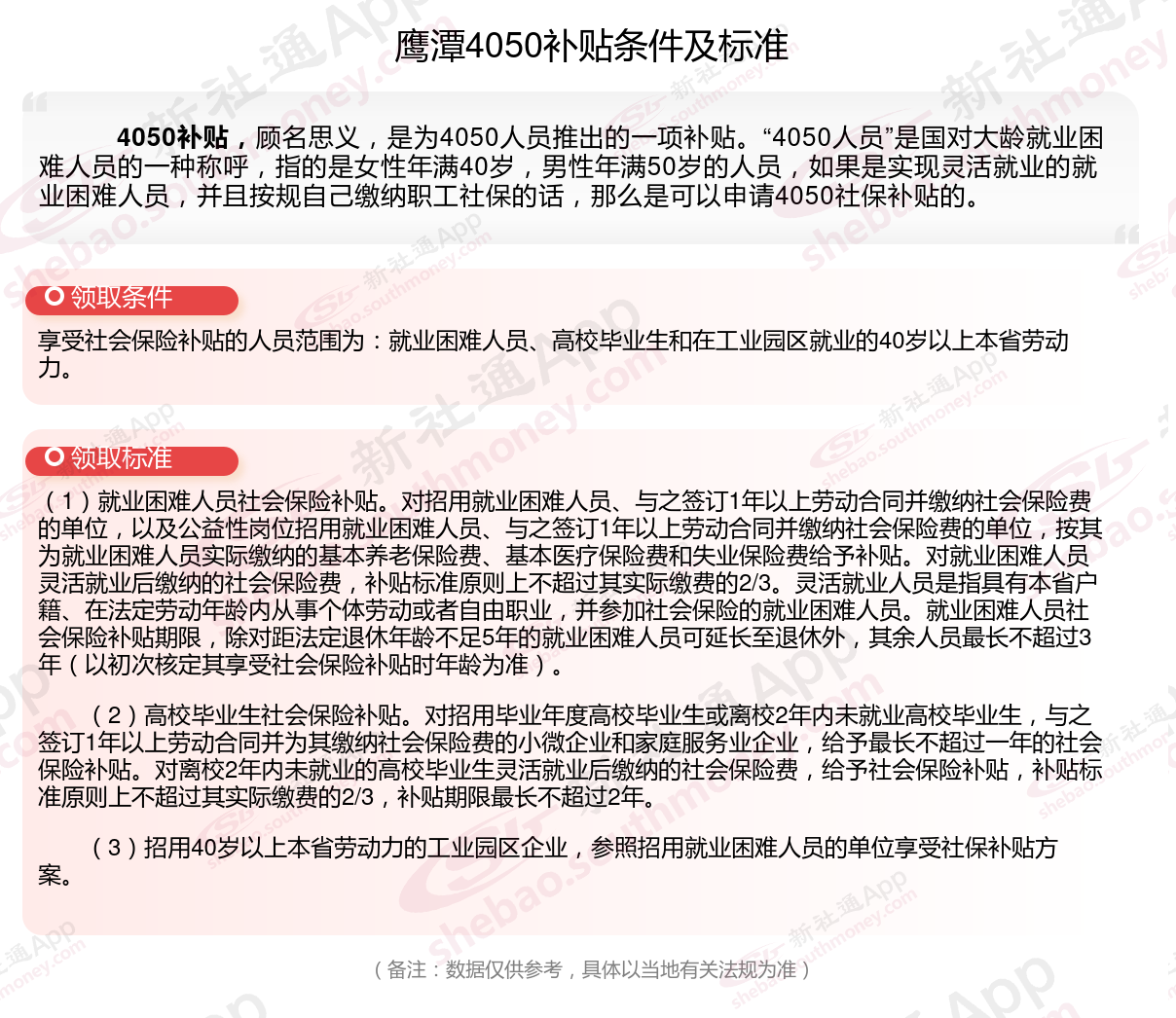 二、鹰潭4050社保补贴标准及条件2023-2024年