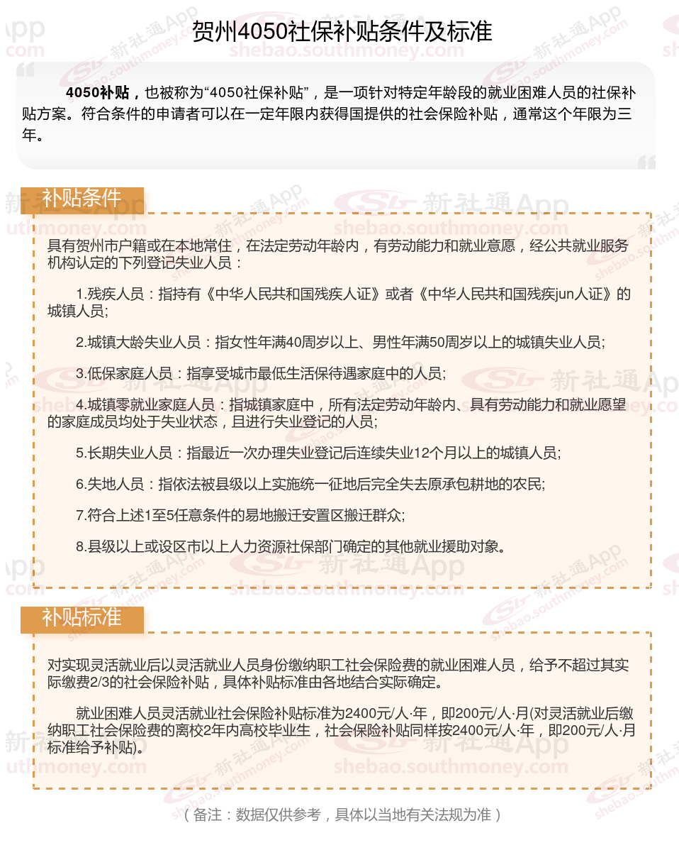 二、2023-2024年贺州4050社保补贴标准,最新领取条件来了